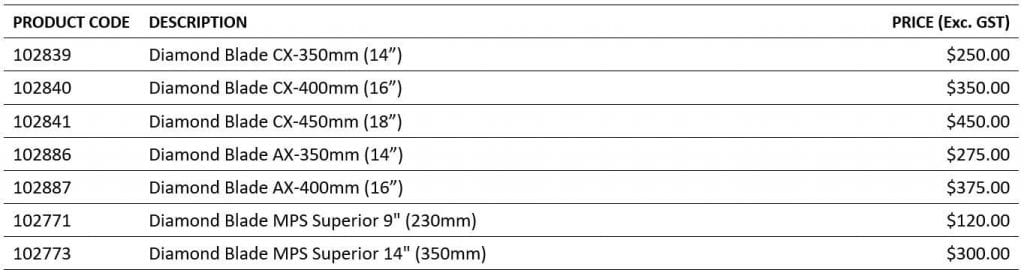 edge. Diamond Blades are suitable for cutting concrete, pavement, asphalt, roads and even yard pavers and bathroom tiles. Our Diamond Blades are designed to remain effective for the entire lifespan of the blade – a lifespan that is longer than a regular blade. Diamond Blades also produce much faster cutting speeds.
