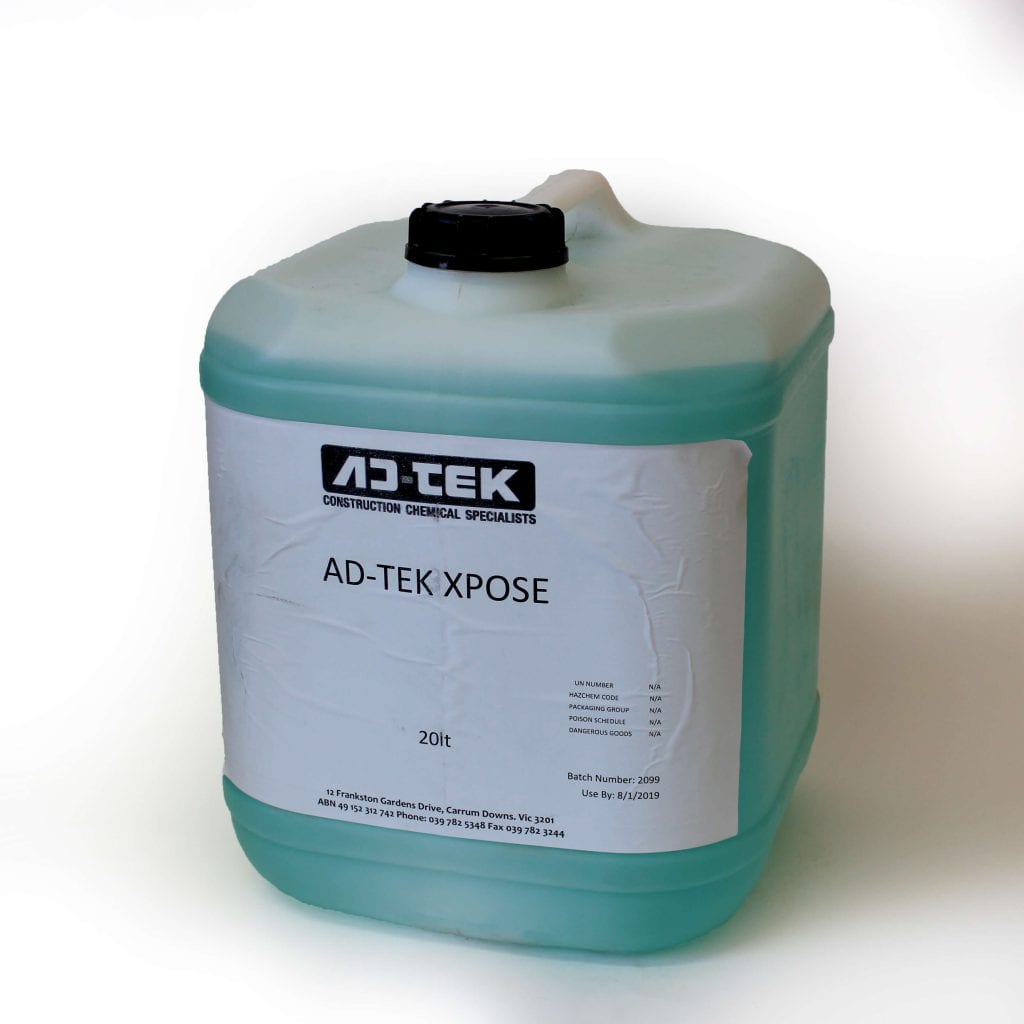 Product Details: Evenrange X-Pose Concrete Surface Retarder is a uniquely formulated liquid that retards the surface of the concrete, whilst allowing the subsurface to still harden. This unique feature allows easy removal of the treated concrete while the subsurface concrete remains hard and limits the failure of the aggregate bond in the exposed concrete.