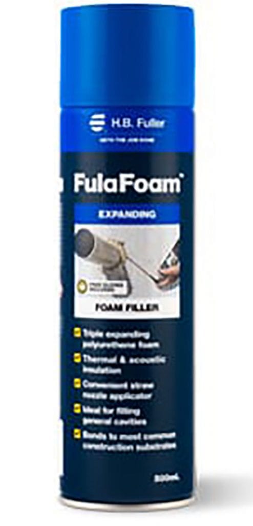 Product Details: FulaFoam Expanding Foam is a triple expanding, general purpose, polyurethane foam that will fill cavities ranging in size from small gaps to larger spaces. FulaFoam Expanding Foam can be used inside or outside, will adhere to a wide range of substances and will provide an airtight, moisture resistant seal when cured.