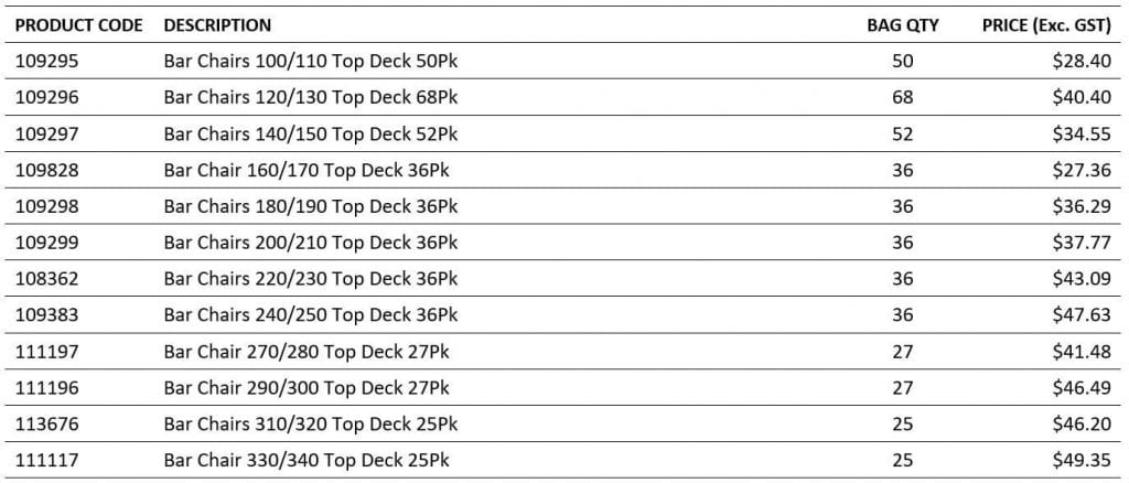Product Description: Top Deck Chairs supports both top mesh and top reinforcing bars in suspended decks, thick precast and tilt-up panels and any tall spacer applications, where strength and stability are critical. The chair’s primary feature is that it has a square base design which allows it to sit very rigid on bon-deck and formwork slabs.